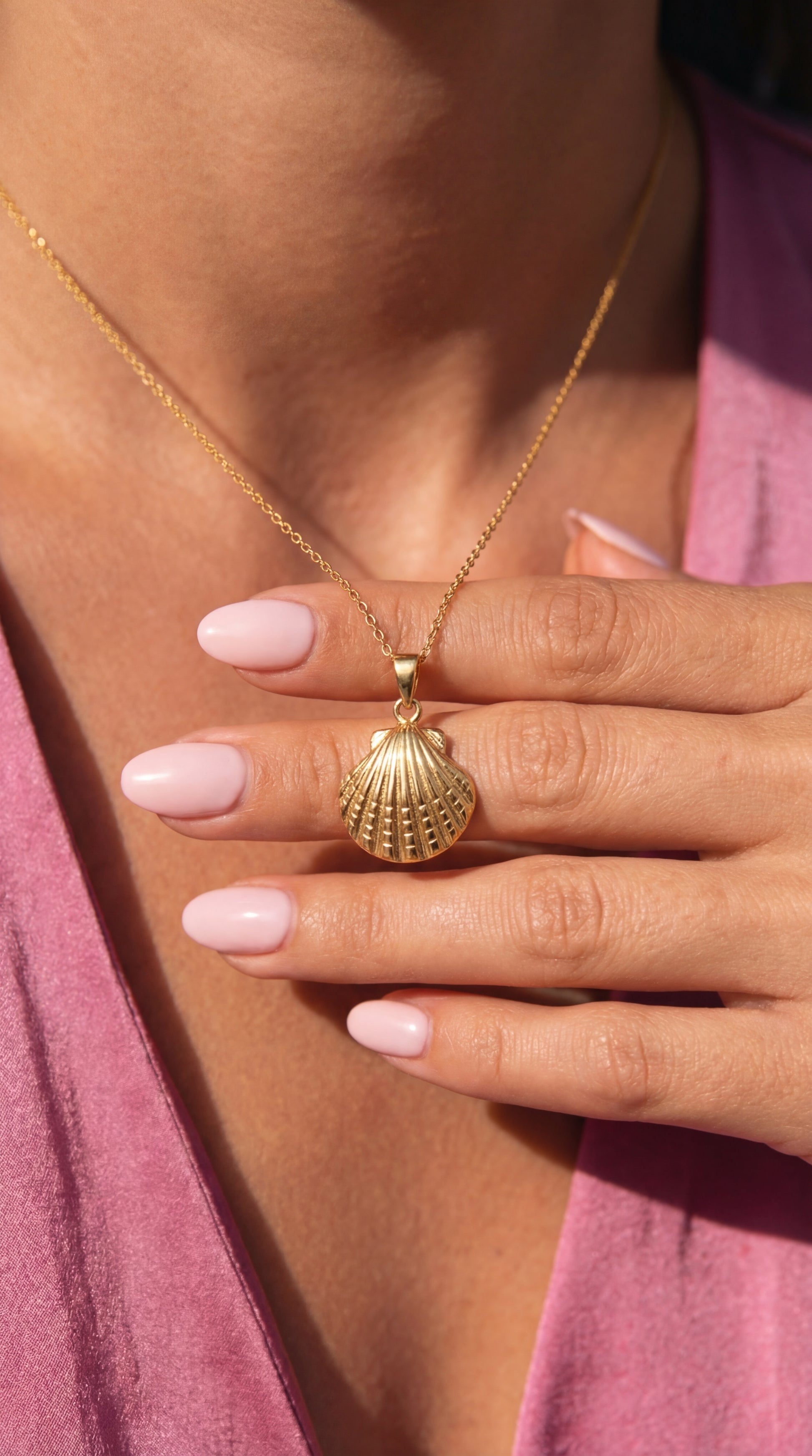 Collar de estilo playero, con colgante de concha delicado. Un toque veraniego y fresco para tu look..